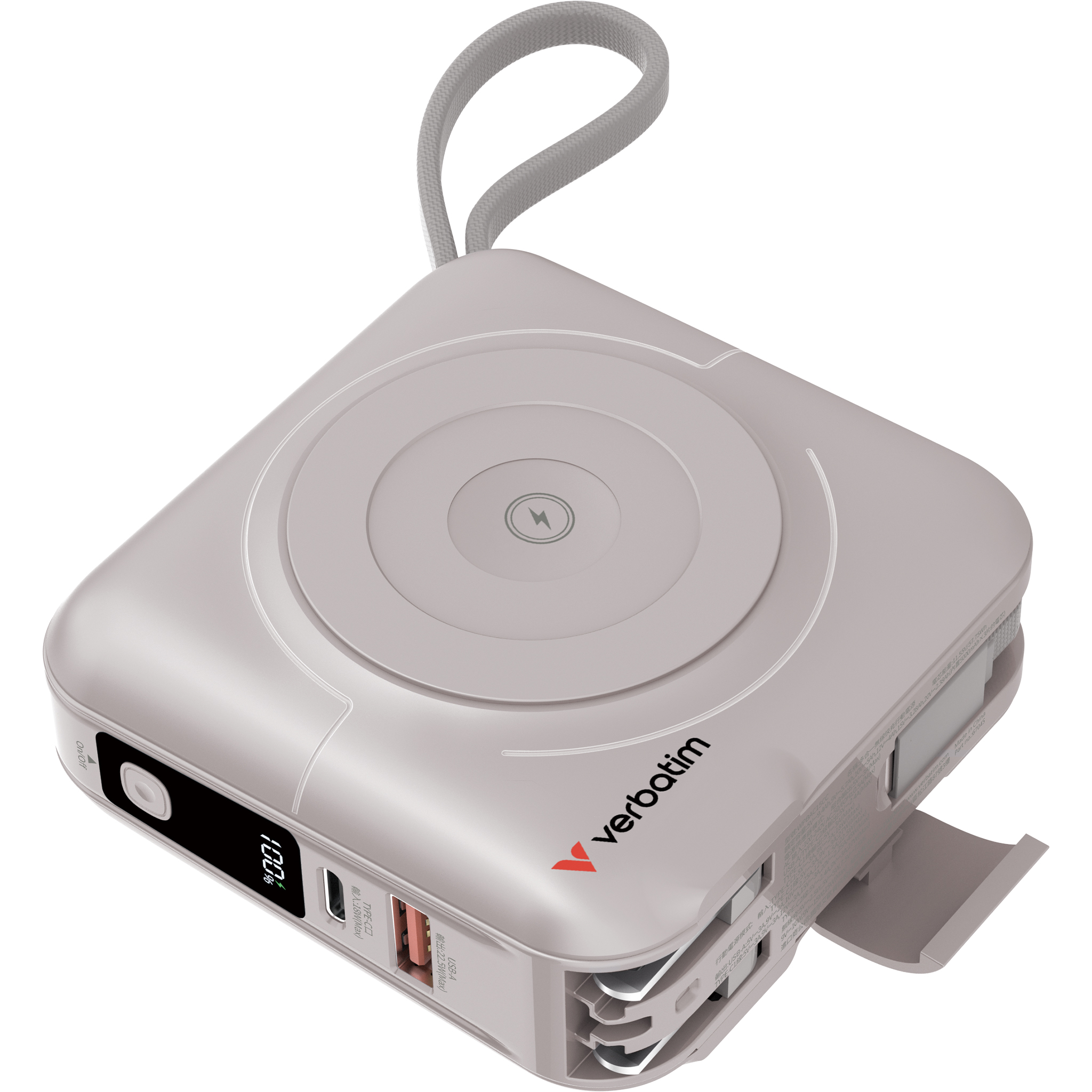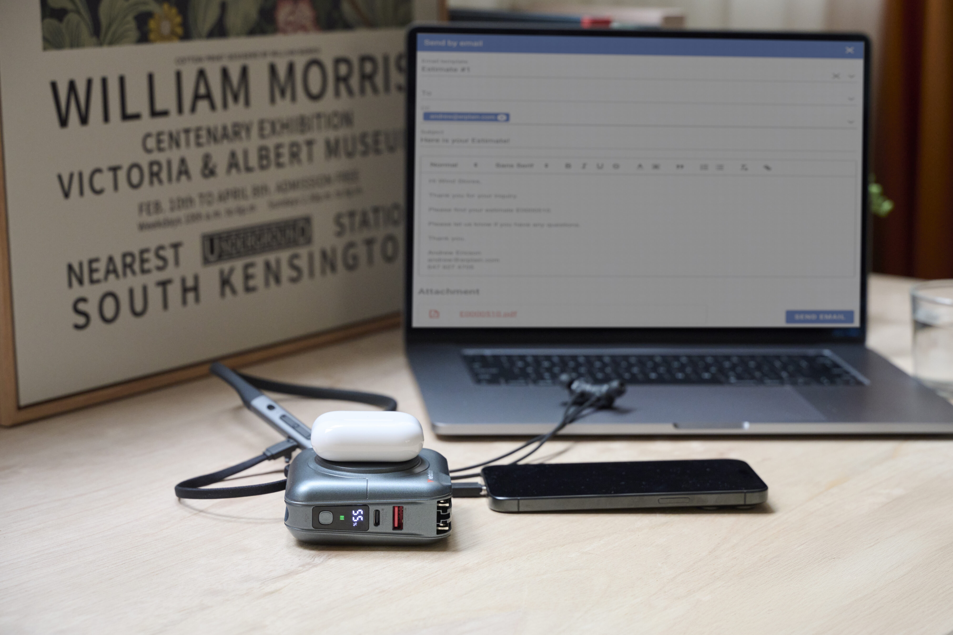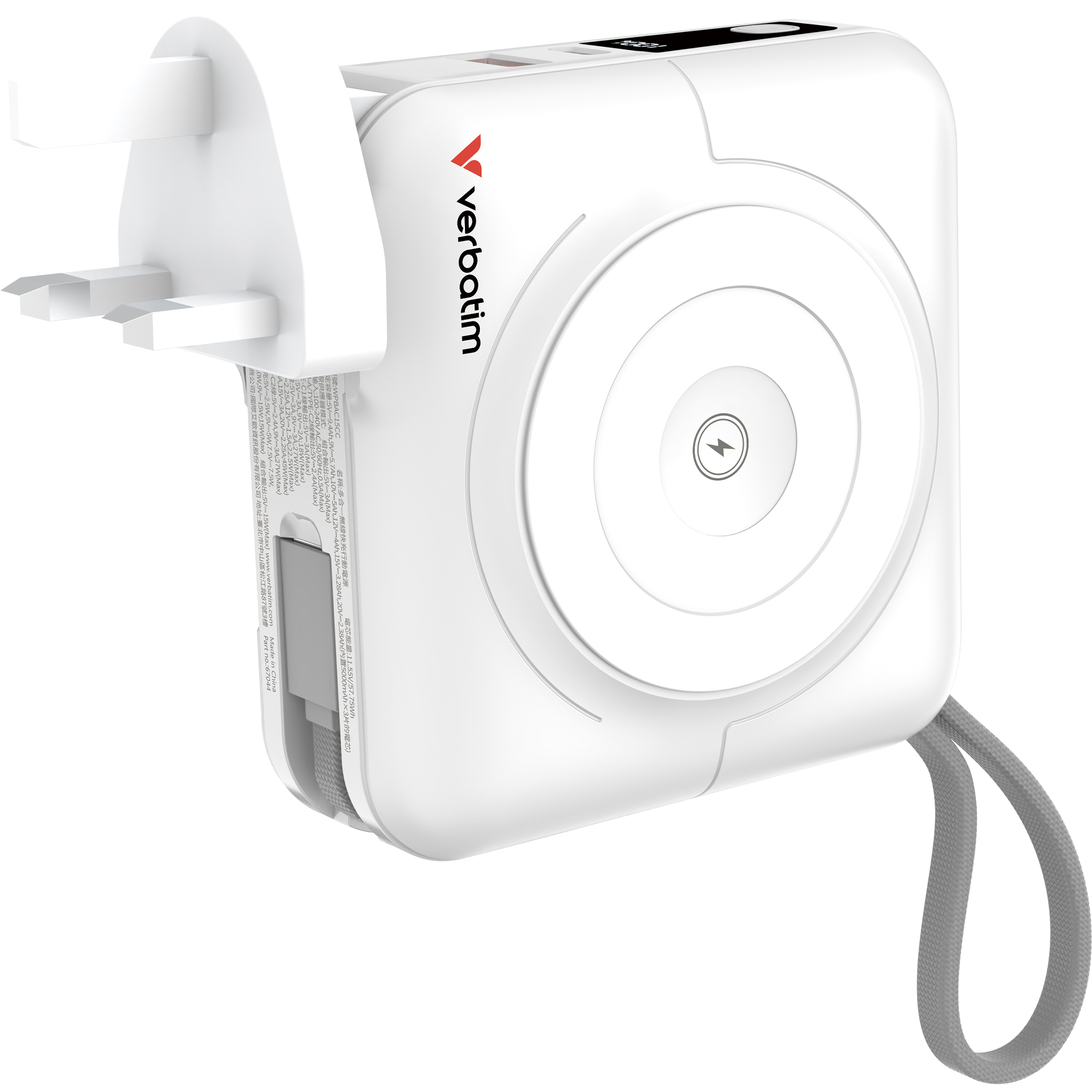 This versatile power bank integrates magnetic wireless charging (15W) with dedicated outputs for smartphones (15W)*, smartwatches (2.5W), and earbuds (5W). It also supports up to 45W PD wired fast charging, making it suitable even for laptops and high-consumption devices. With a foldable AC plug and 3 interchangeable international plugs, you can plug directly into wall outlets for instant charging—ideal for business trips and travel.