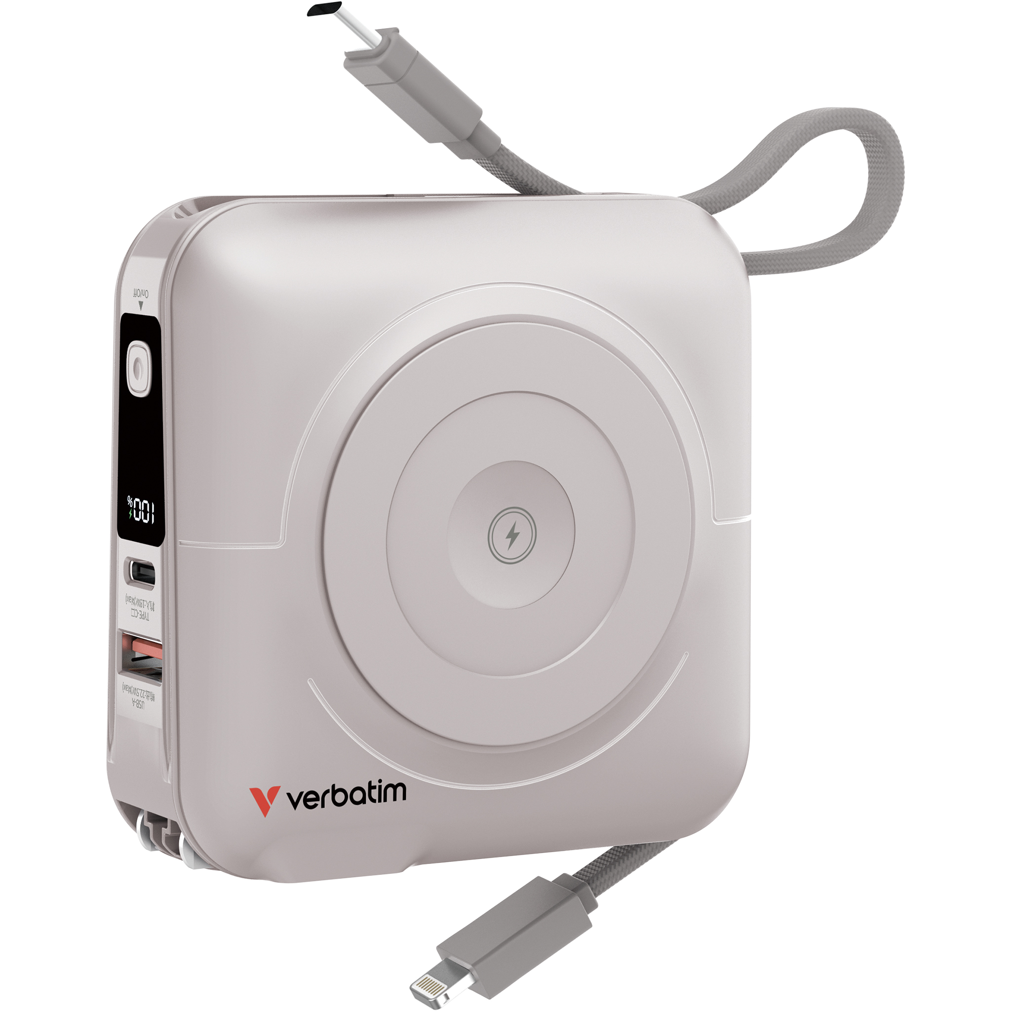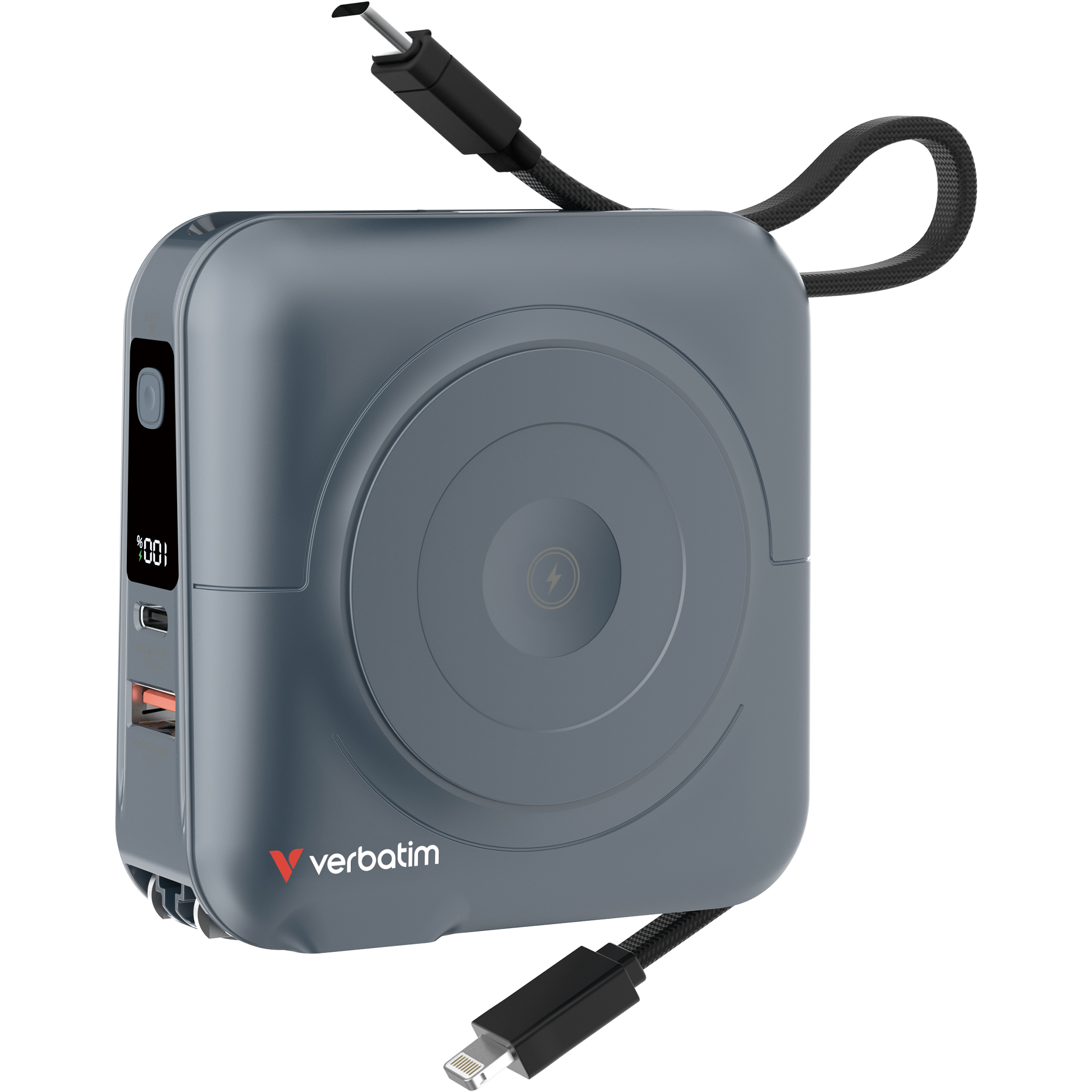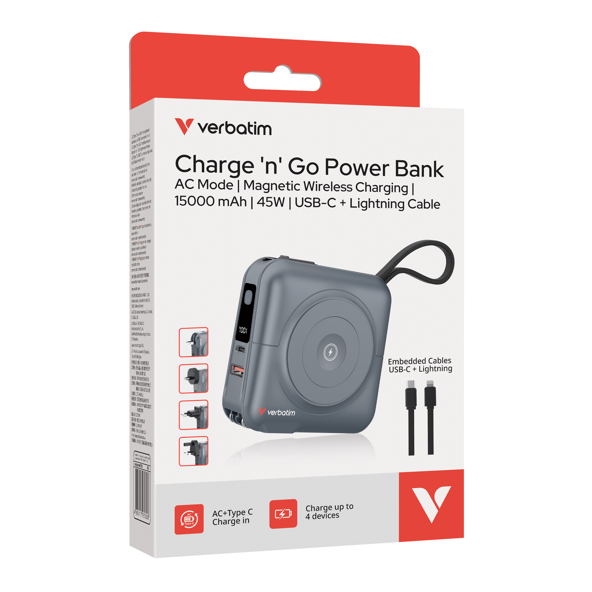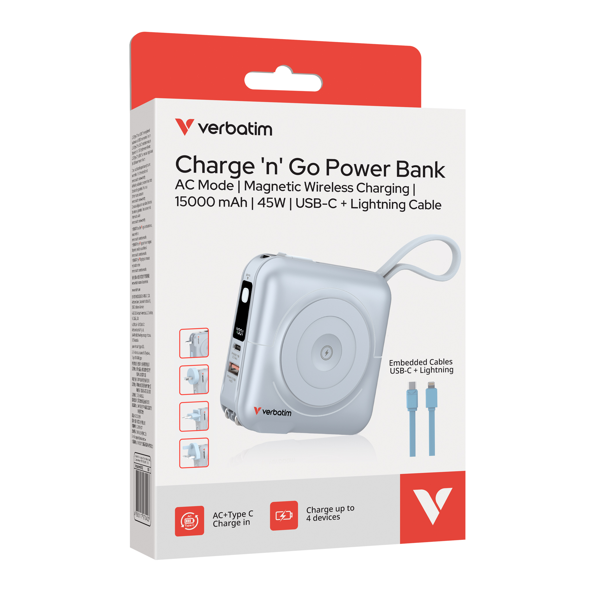 The Charge ‘n’ Go 15000mAh All-in-One Magnetic Wireless Charging Power Bank comes with built-in USB-C + Lightning cables and a powerful 15000mAh capacity. Equipped with 1A+1C charging ports, it supports up to 4 devices charging simultaneously. Whether it’s smartphones, tablets, earbuds, or other portable gadgets, you’ll enjoy stable power delivery across multiple scenarios.