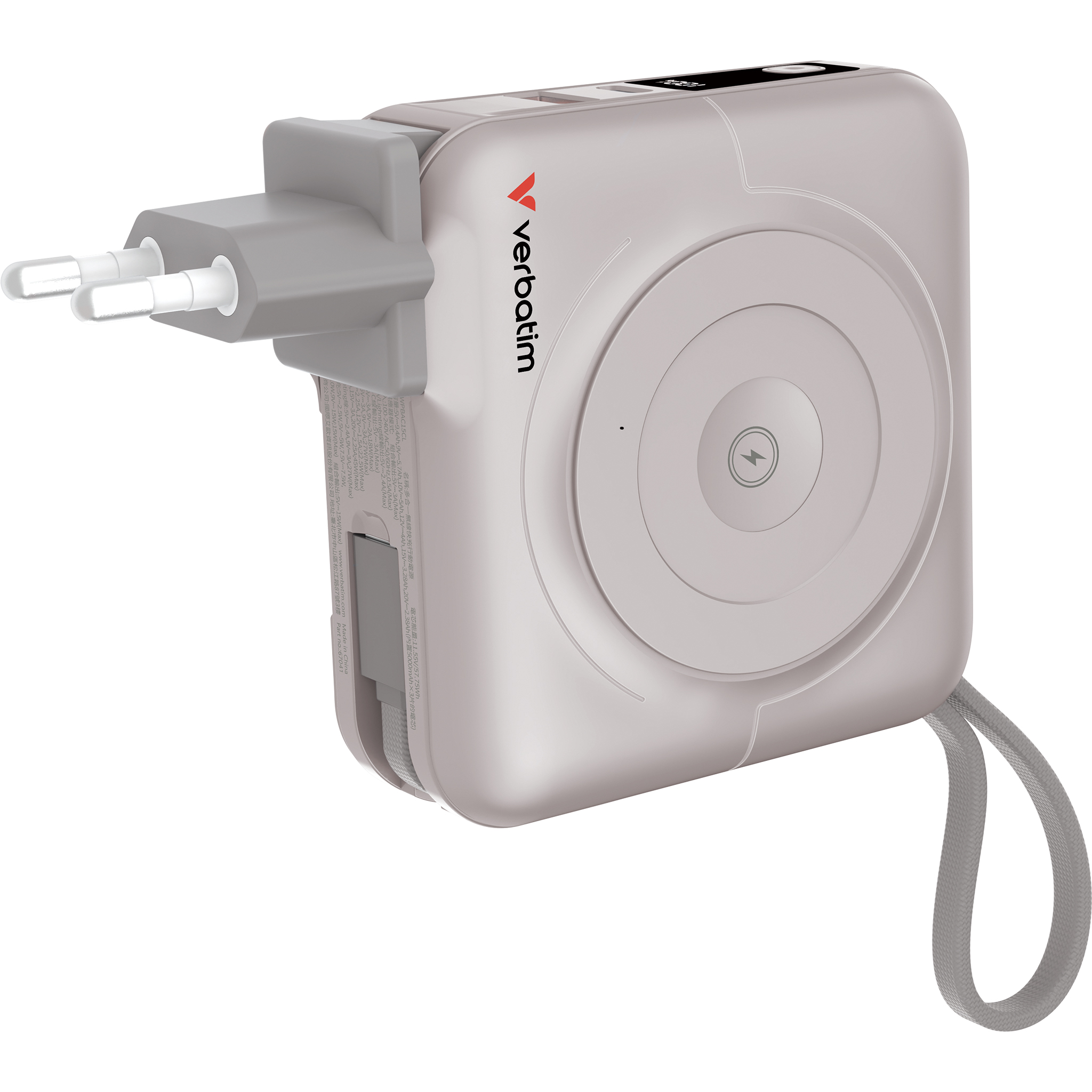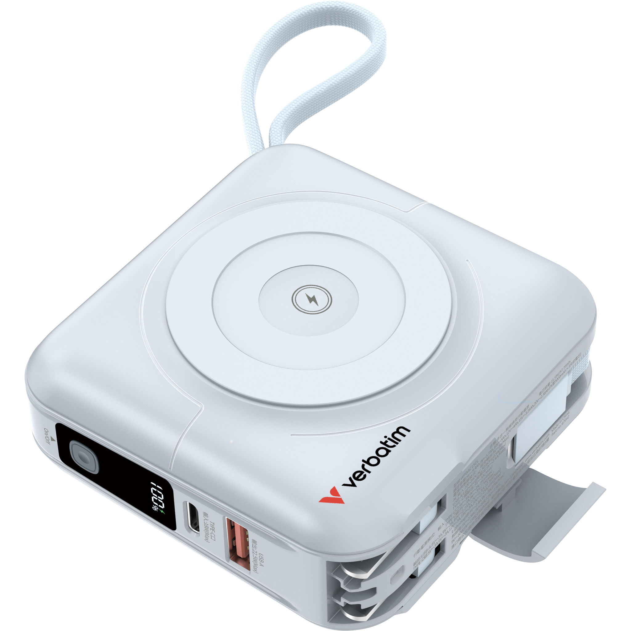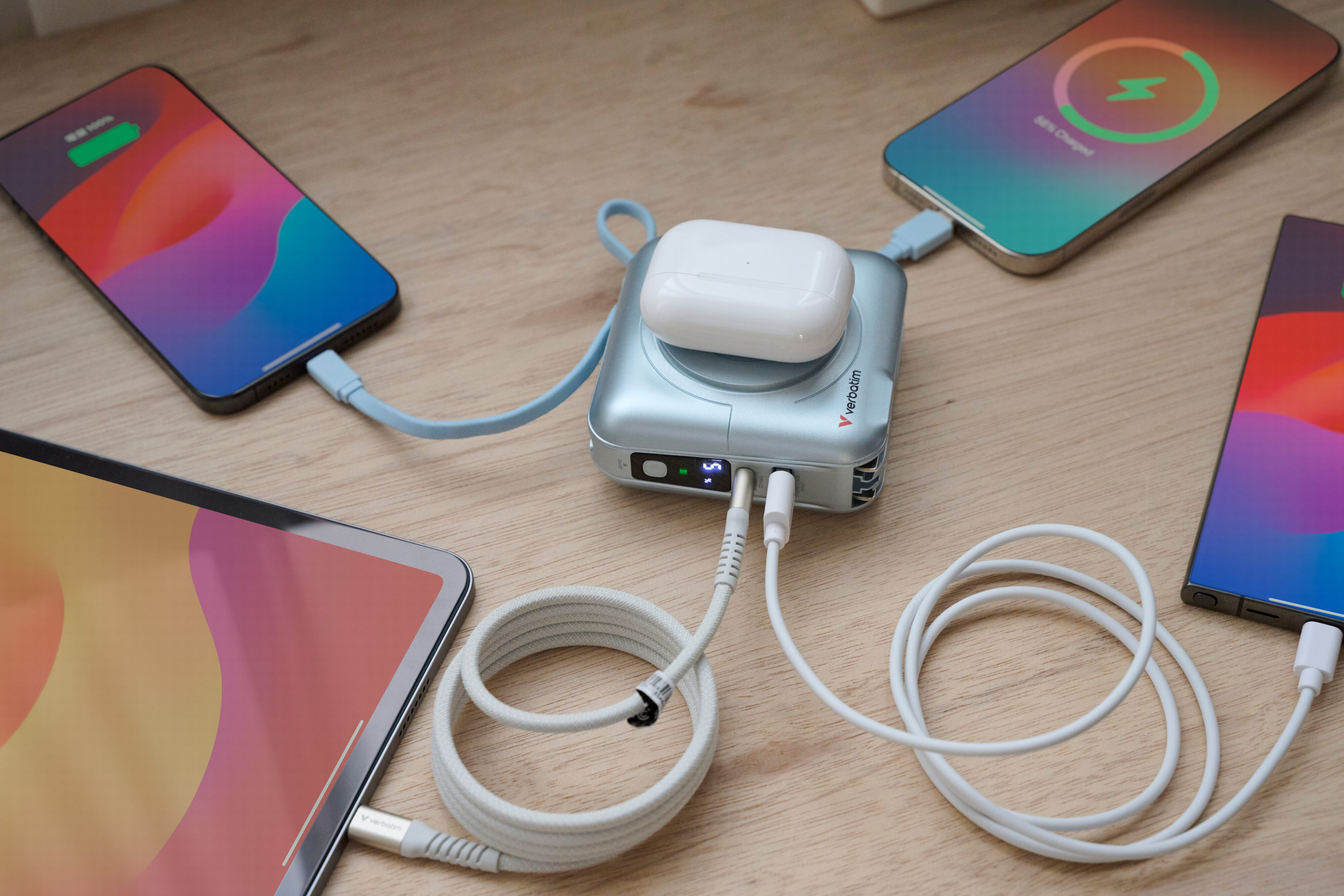 This versatile power bank integrates magnetic wireless charging (15W) with dedicated outputs for smartphones (15W)*, smartwatches (2.5W), and earbuds (5W). It also supports up to 45W PD wired fast charging, making it suitable even for laptops and high-consumption devices. With a foldable AC plug and 3 interchangeable international plugs, you can plug directly into wall outlets for instant charging—ideal for business trips and travel.