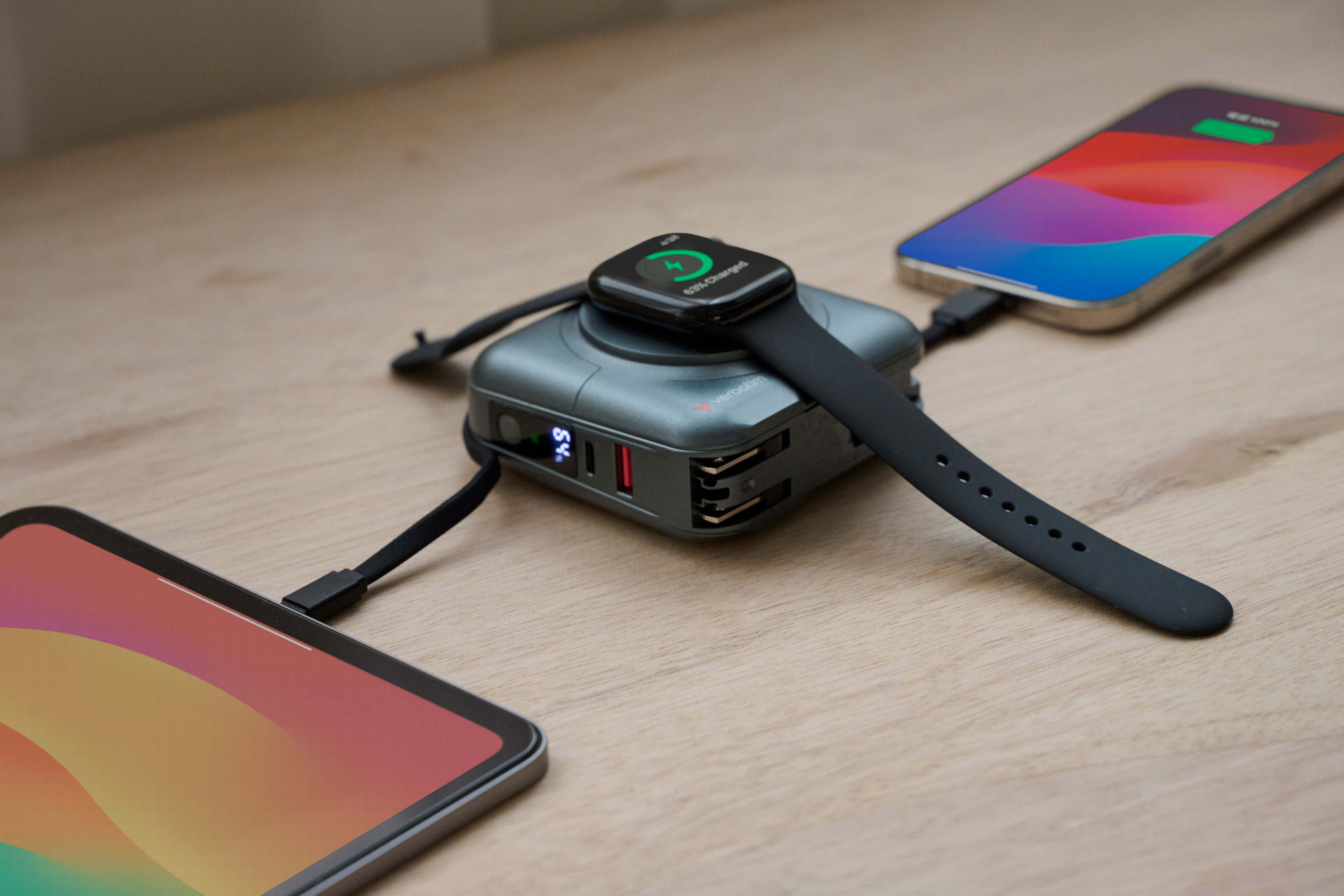- 15000mAh High Capacity + Built-in USB-C & Lightning Cables, up to 4 devices charging simultaneously