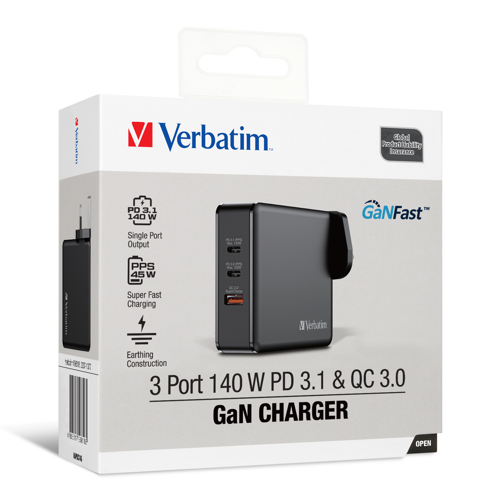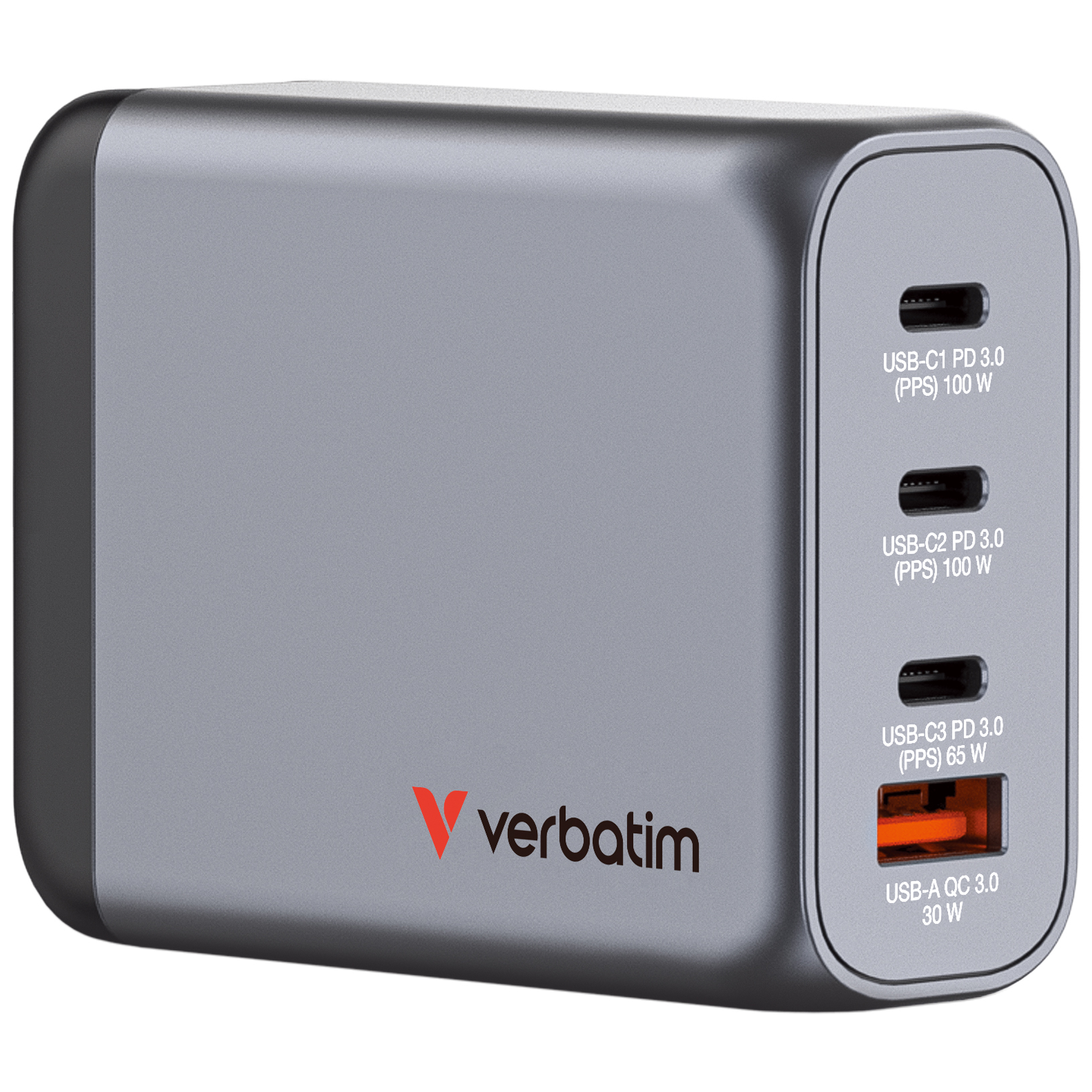 Verbatim’s 100W GaN Wall Charger consolidates multiple chargers into one, combining two USB-C PD 100W ports, one USB-C PD 65W port and one USB-A QC 3.0 (EU/UK/US) port in a sleek, palm sized design. USB-C1/C2 maintains up to 65W, for rapid charging of laptop while being used with other ports. Ideal for the office, home or travelling to power your laptop, tablet, smartphone, gaming devices, and more.