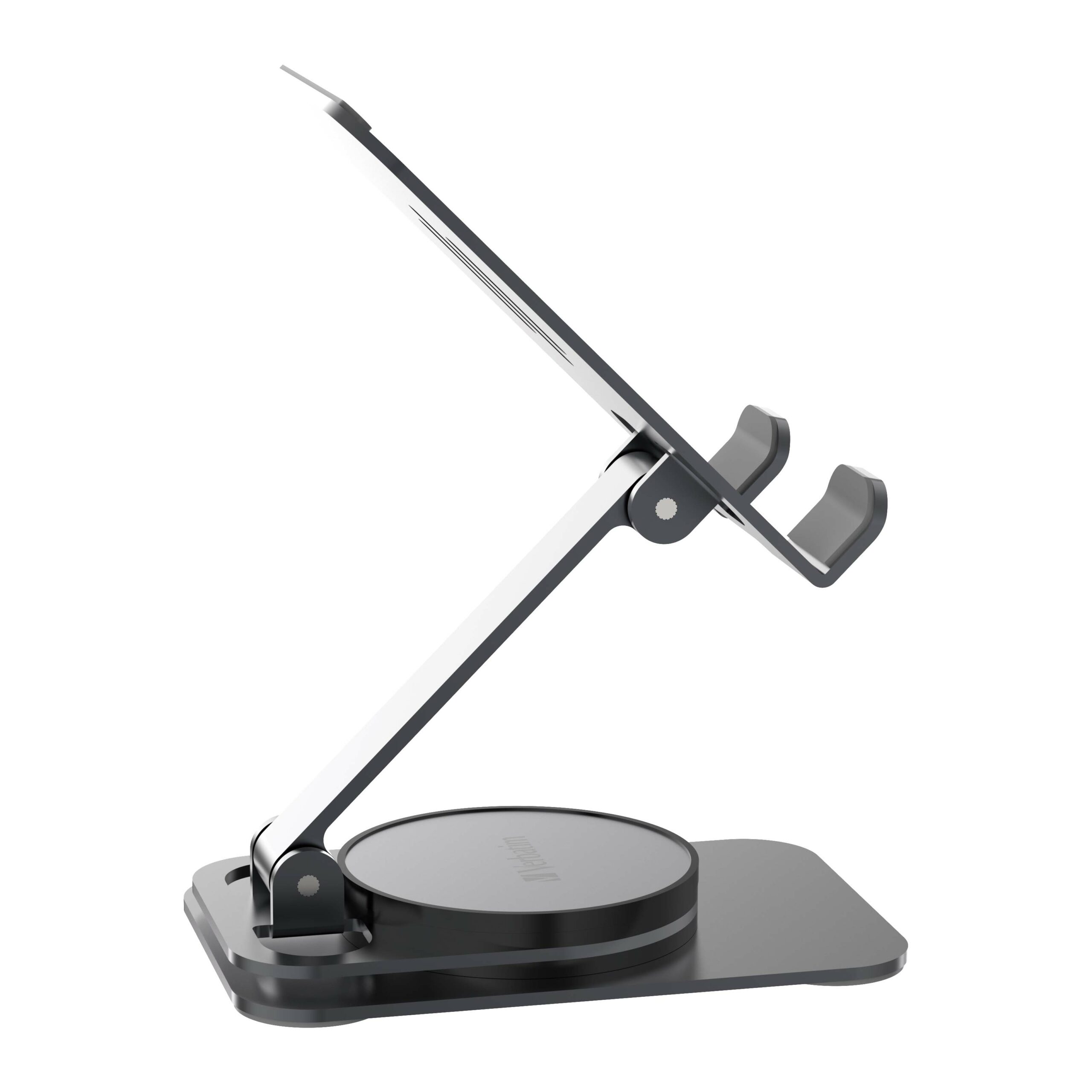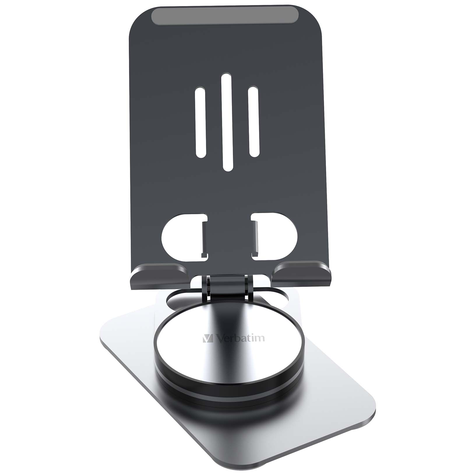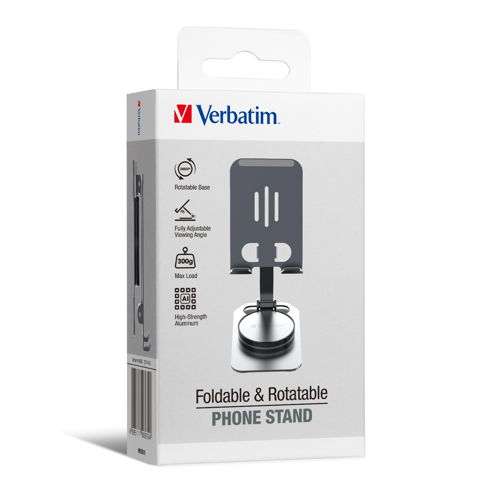Verbatim’s Phone Stand features a 360°rotatable base and dual adjustment points, providing ultimate flexibility in viewing positions for your device. Allowing your eyes to work at a horizontal level and reducing shoulder and neck pressure, improving your posture. The stand folds flat for ultimate grab and go portability and convenience.